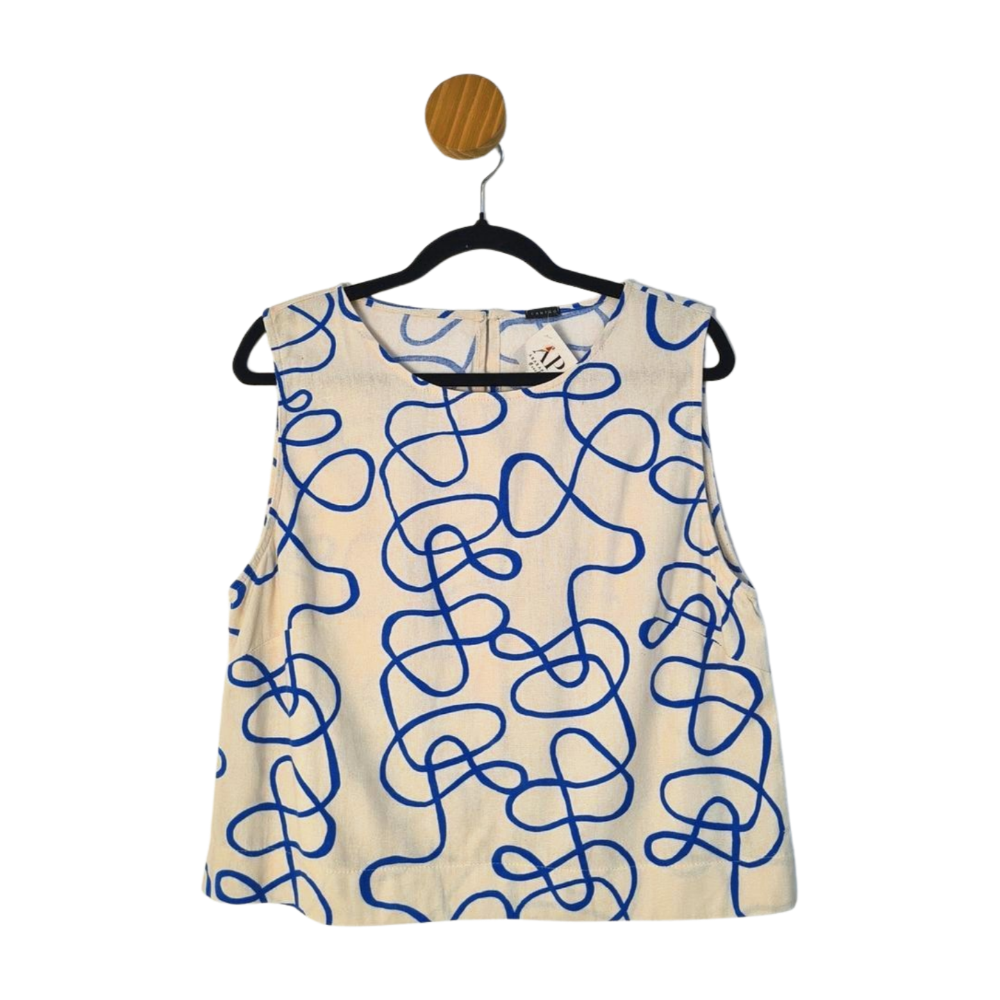 Blusa regata estampa linhas, em Viscose com Linho. Medidas: 108 cm busto, 108 cm cintura, 50 cm comprimento.