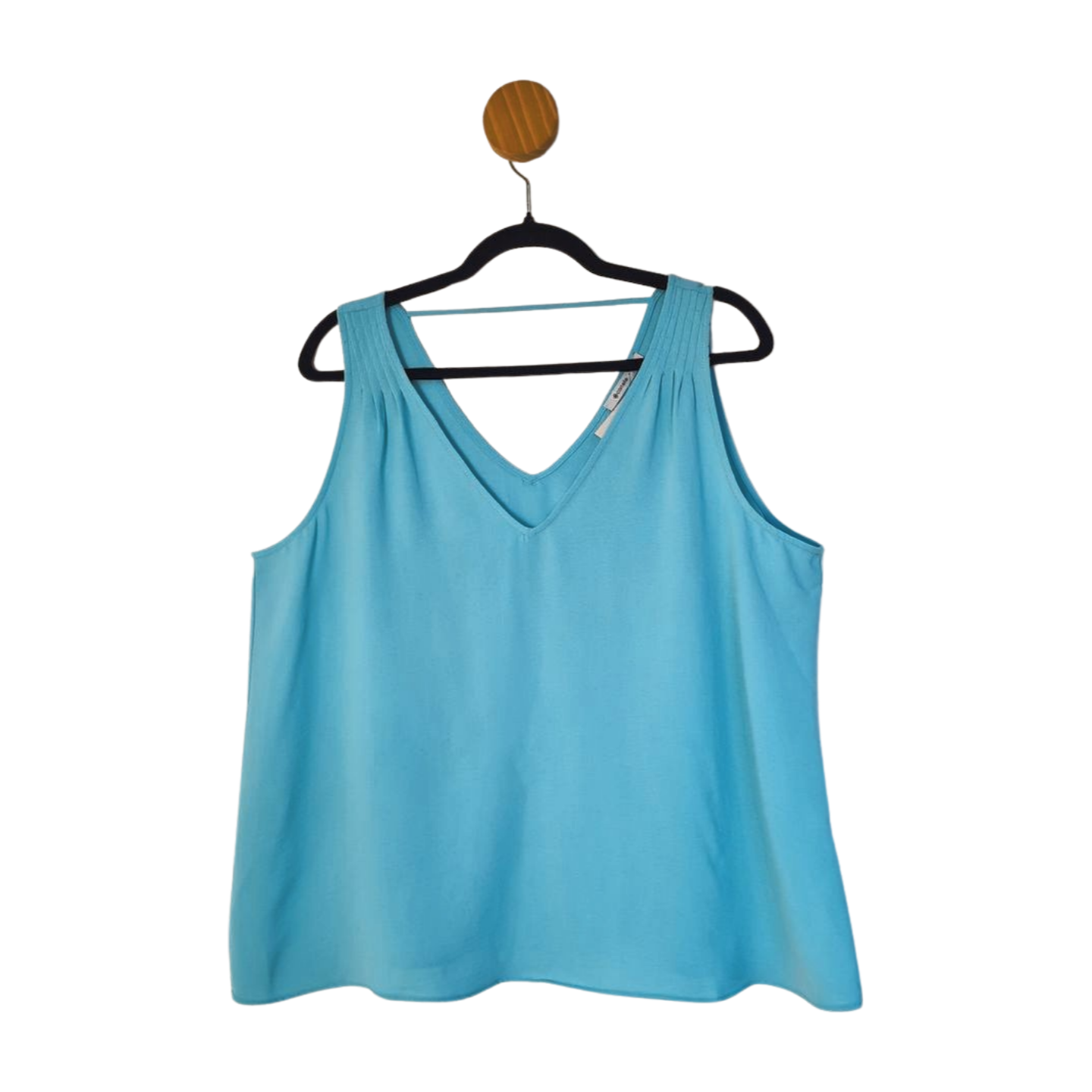 Blusa regata em crepe com drapeado nos ombros. Medidas: 122 cm busto, 124 cm cintura, 60 cm comprimento.