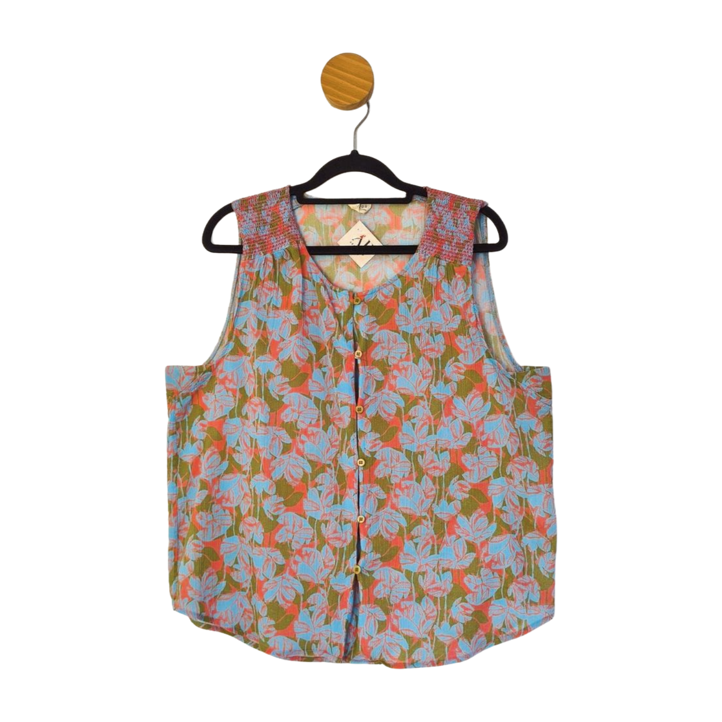 Blusaregata com lastex no ombro, fechamento em botões, tecido caracteristico de Algodão. Ekyog é uma marca francesa responsável, sustentável e ética. Medidas: 112 cm busto, 114 cm cintura, 64 cm comprimento.