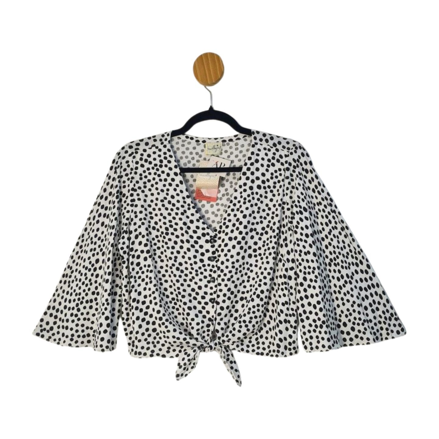 Blusa em amarração, fecha em botões, estampa poá, 100% Viscose - Nova, com etiqueta! Medidas: 112 cm busto, 110 cm cintura, 50 cm comprimento.