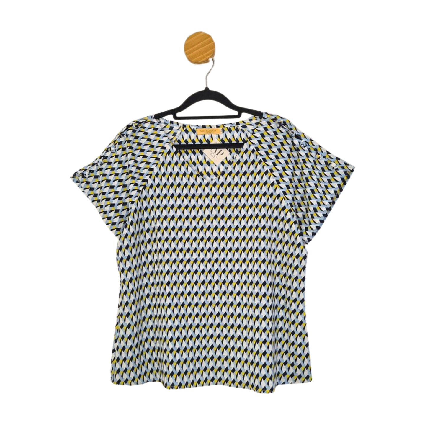 Blusa estampada em crepe. Medidas: 98 cm busto, 98 cm cintura, 62 cm comprimento.