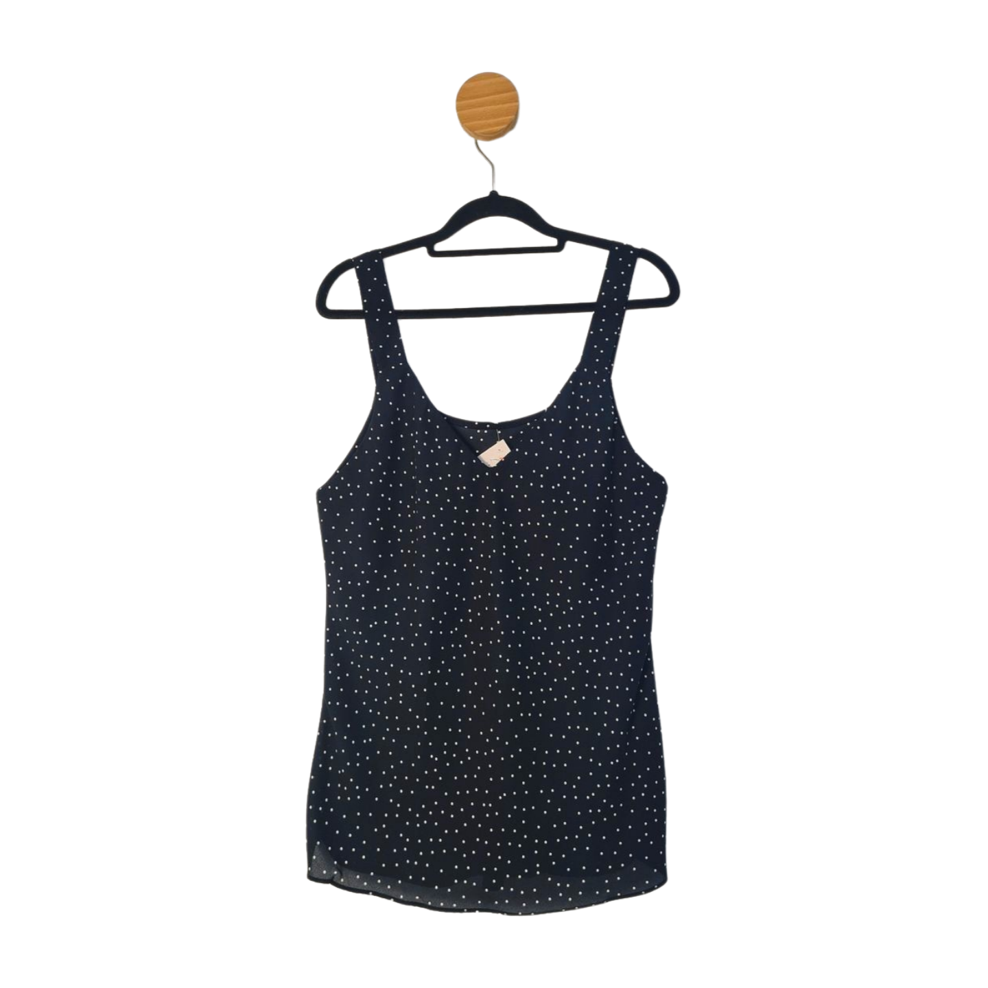 Blusa estampa poá em crepe de Poliéster. Medidas: 108 cm busto, 108 cm cintura, 72 cm comprimento.