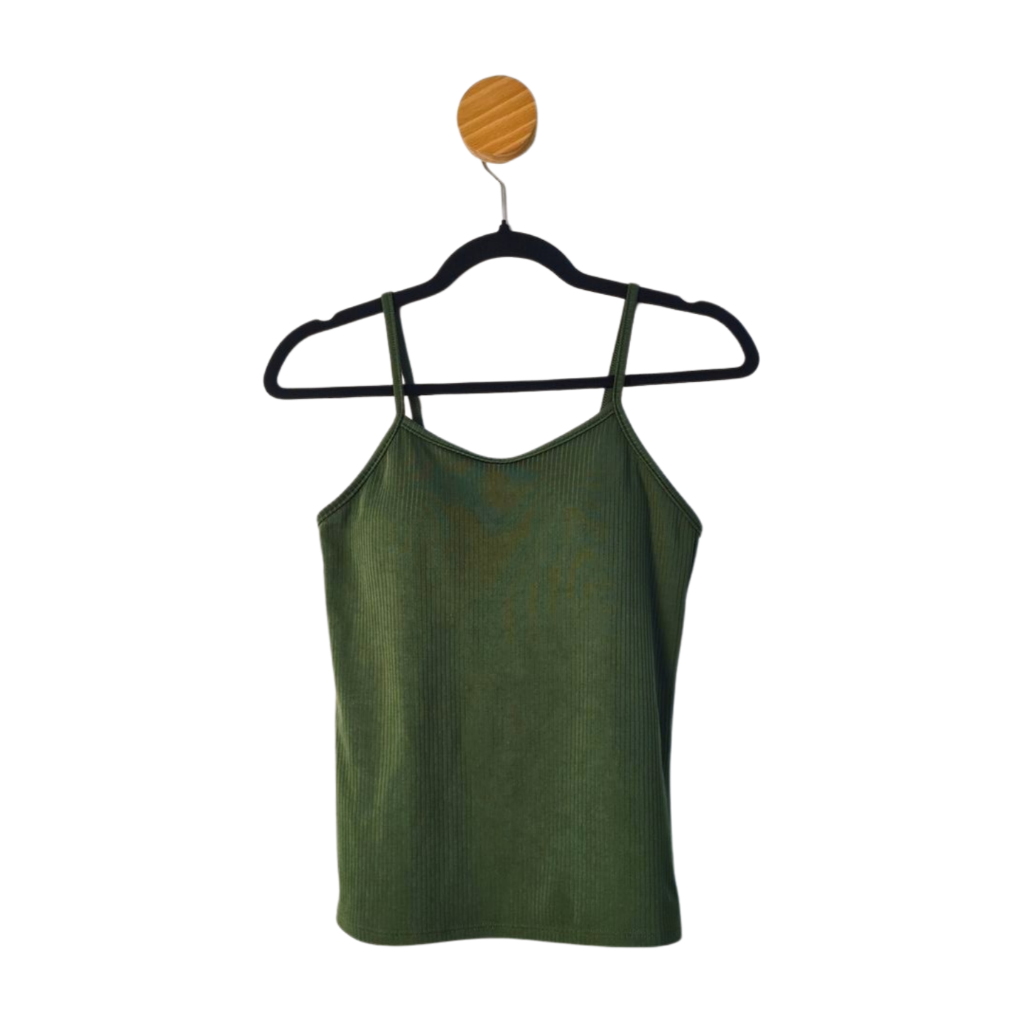 Blusa de alça canelada com bojo, tecido com elasticidade. 82 cm busto, 80 cm cintura, 58 cm comprimento.