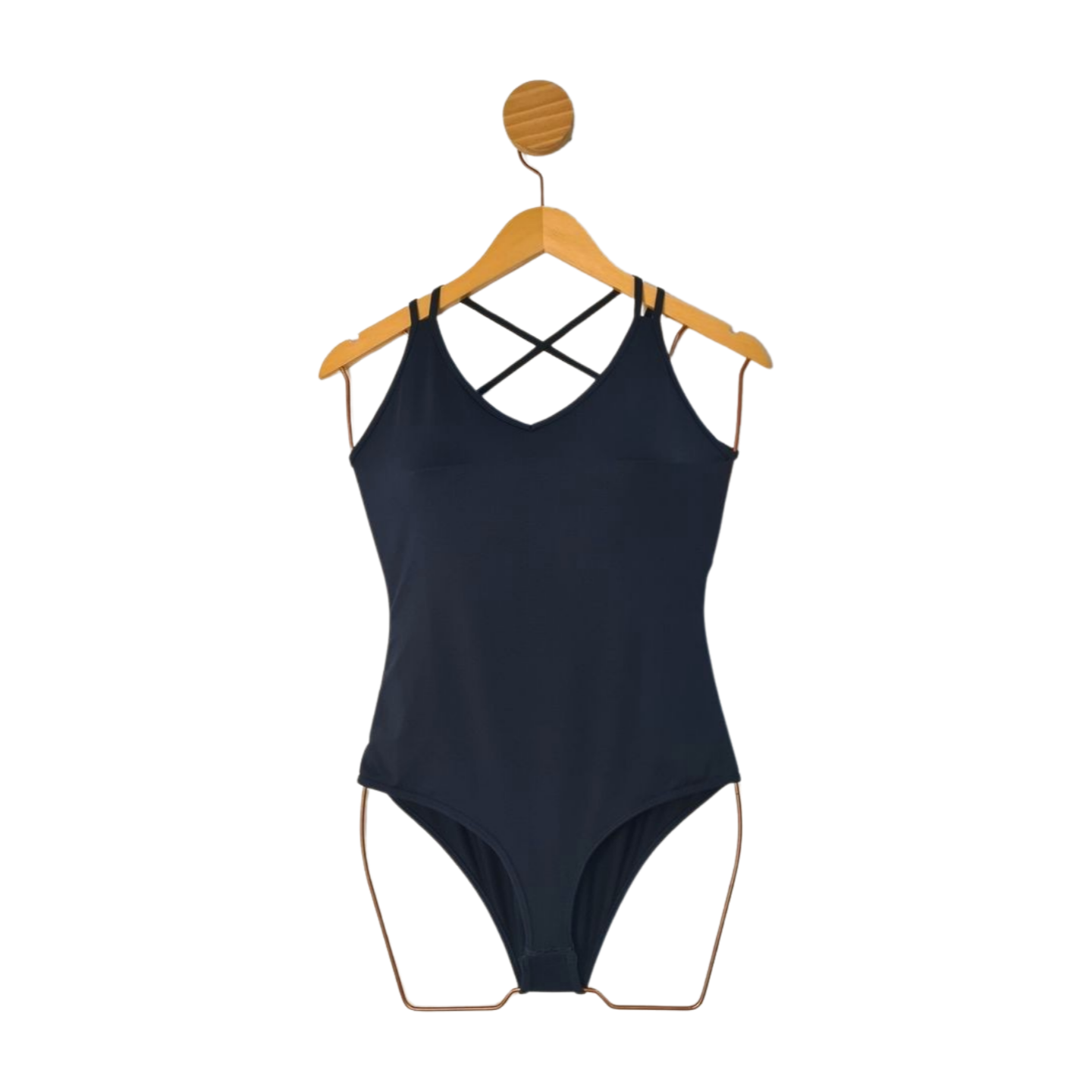 Body em dupla camada de malha na frente, costas com decote cruzado, 90% Poliamida e 10% Elastano. Medidas: 86 cm busto, 84 cm cintura, 70 cm comprimento.