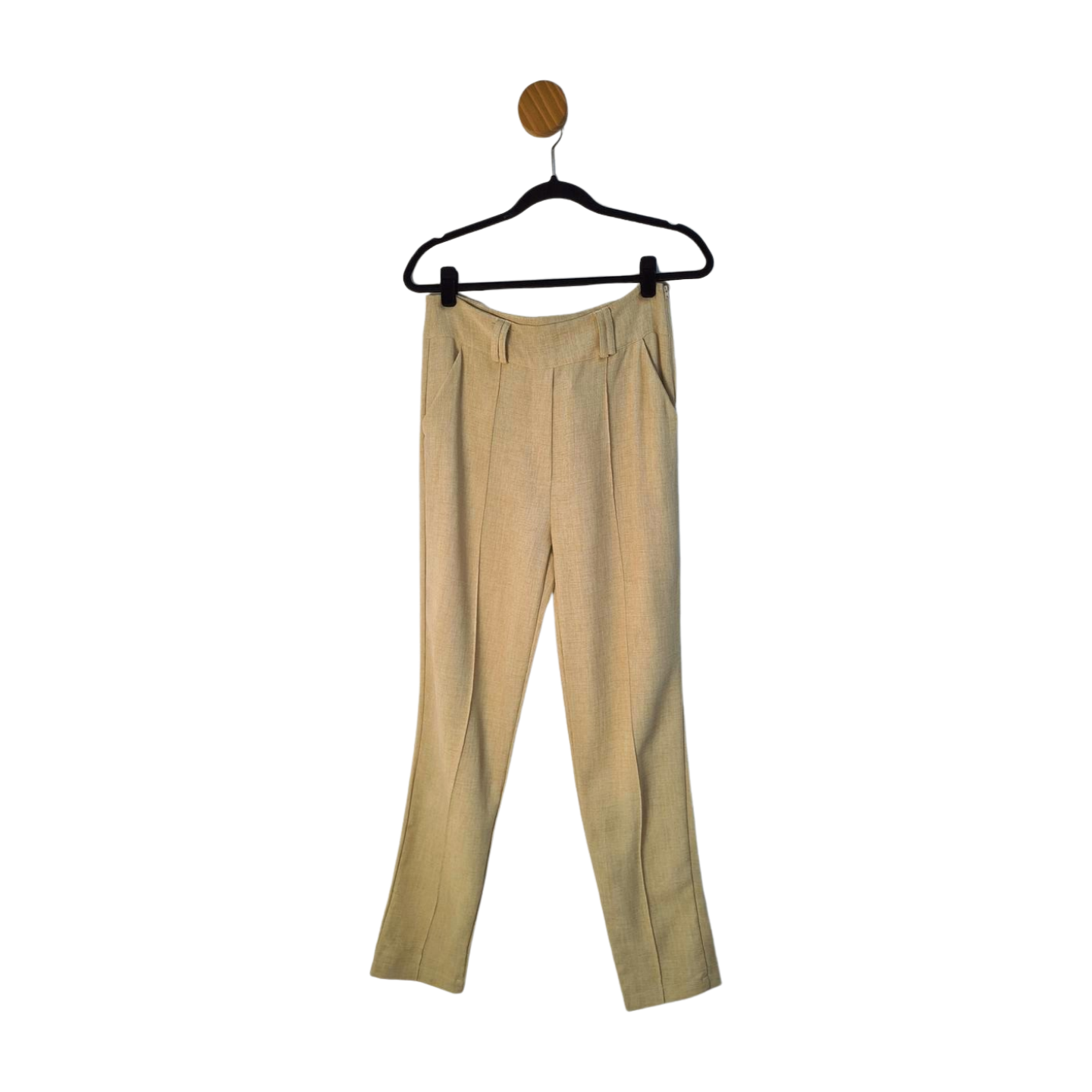 Calca casual modelo cenoura, com bolsos, passantes duplos, fecha em zíper lateral, em Poliéster com Elastano. Medidas: 76 cm cintura, 100 cm quadril, 98 cm comprimento, 33 cm gancho.