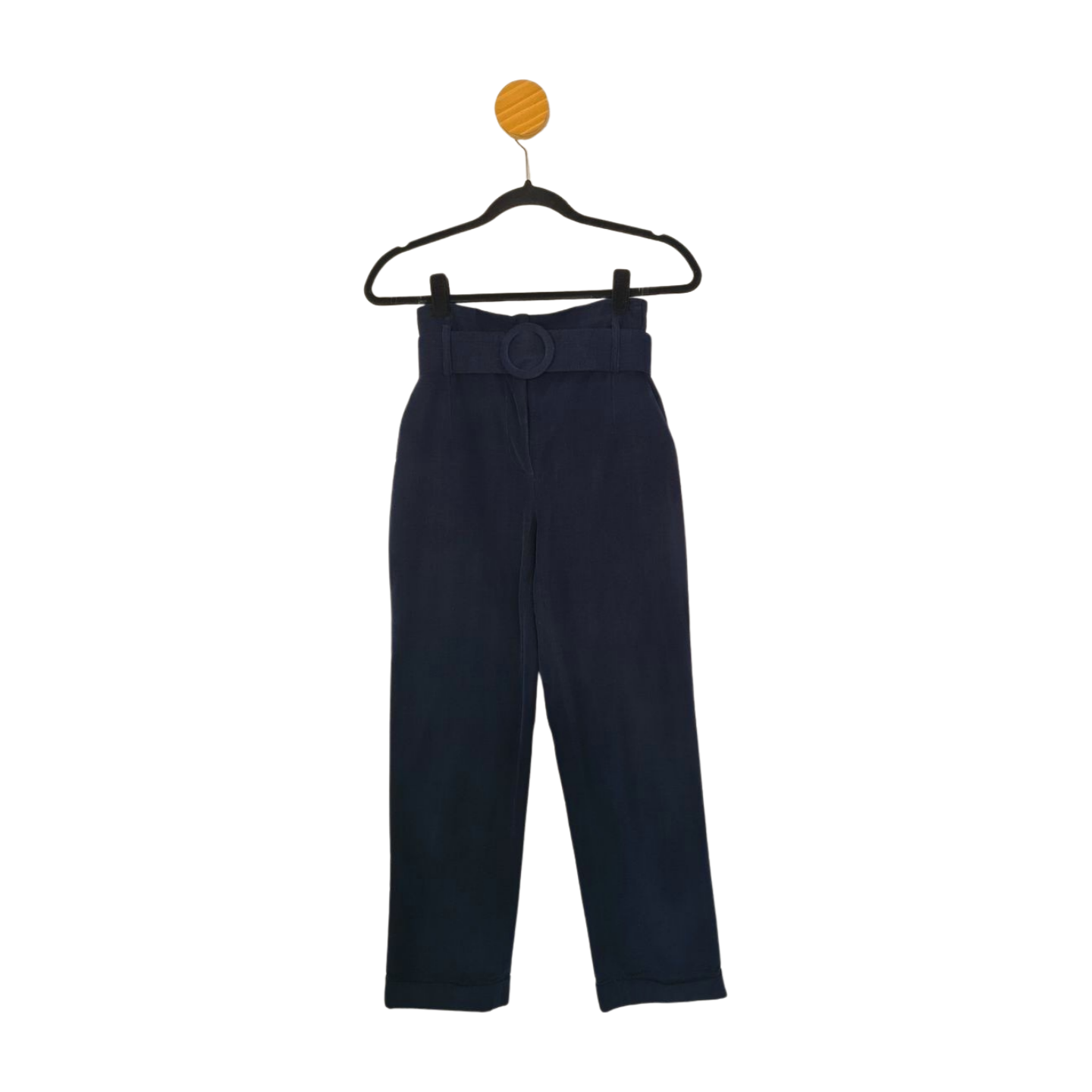 Calça em veludo cotelê, modelagem mais ampla no quadril, bolsos, cintura super alta. Acompanha cinto com fivela revestida no mesmo tecido da calça. Medidas: 62 cm cintura, 90 cm quadril, 92 cm comprimento, 30 cm gancho.