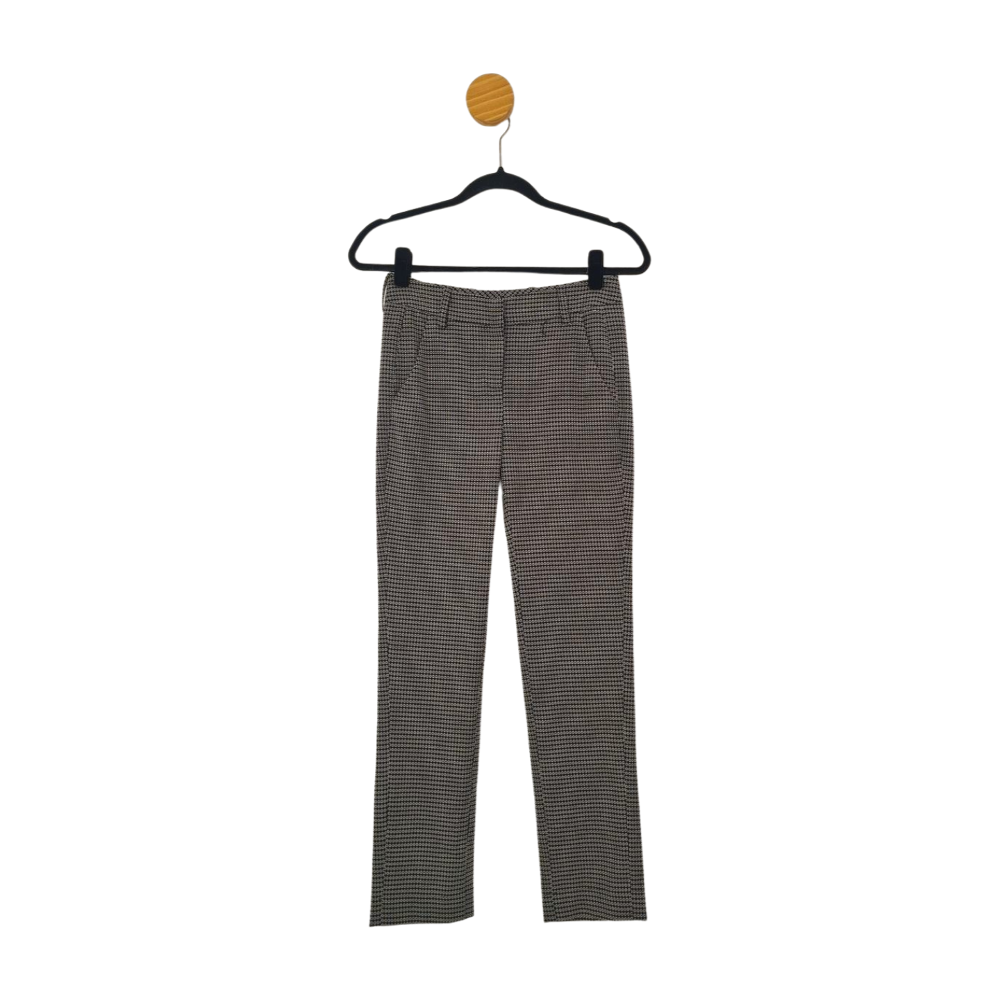 Calça casual estampa, modelagem reta com bolsos e passantes, 73% Viscose, 23% Poliéster e 4% Elastano. Medidas: 74 cm cintura, 96 cm quadril, 92 cm comprimento, 22 cm gancho.
