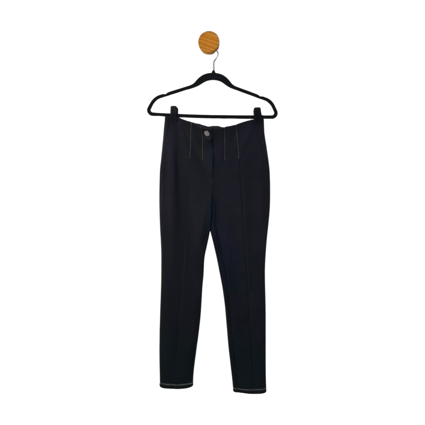 Calça skinny em malha super encorpada, detalhes em pesponto, botão não funcional e elástico largo na parte interna do cós. 67% Viscose, 28% Poliamida, 5% Elastano - Nova! Medidas: 74/84 cm cintura, 96 cm quadril, 90 cm comprimento, 28 cm gancho.