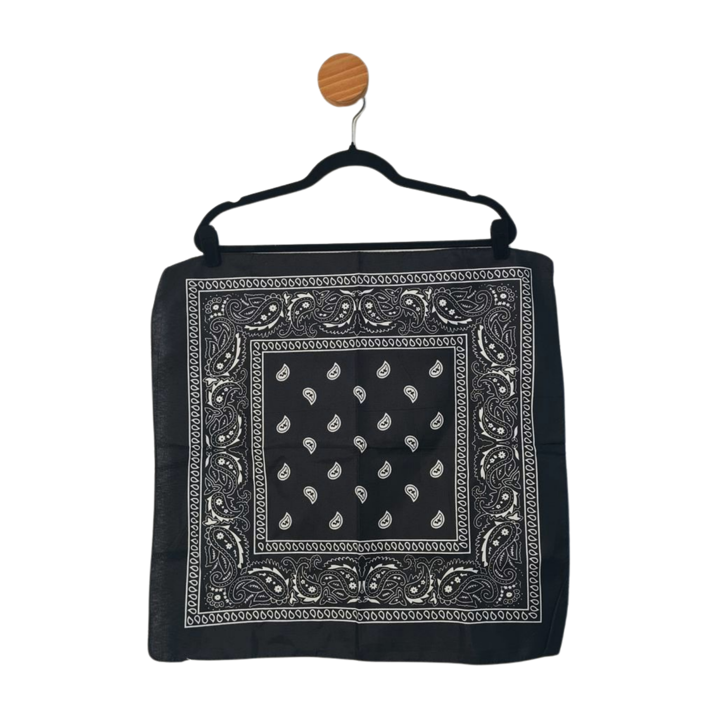 Lenço estampa arabescos. Medidas: 54 cm largura,54 cm comprimento.