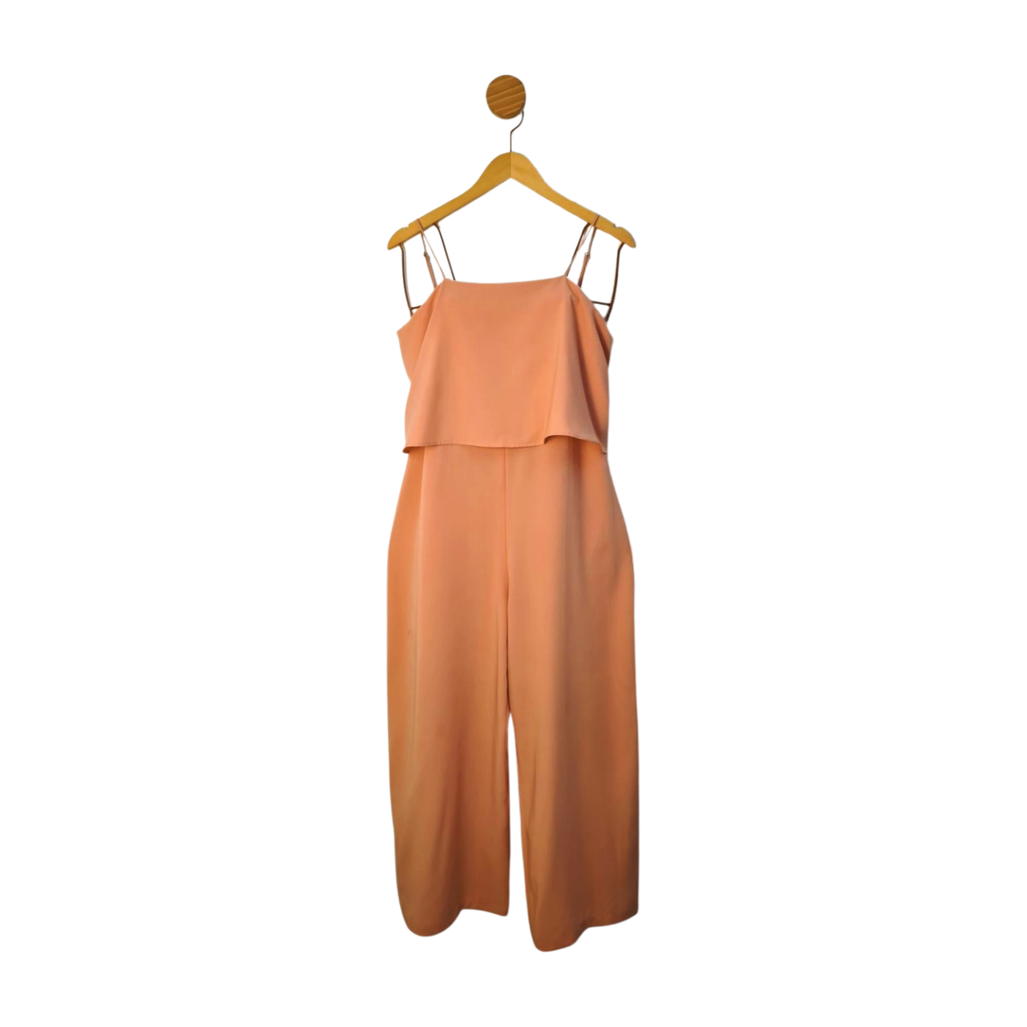 Macacão pantalona com sobreposição de tecido na frente, amarração atrás e alças reguláveis, fechamento em zíper invisível. 97% Poliéster, 3% Elastano Medidas: 98 cm busto, 90 cm cintura, 110 cm quadril, 135 cm comprimento.