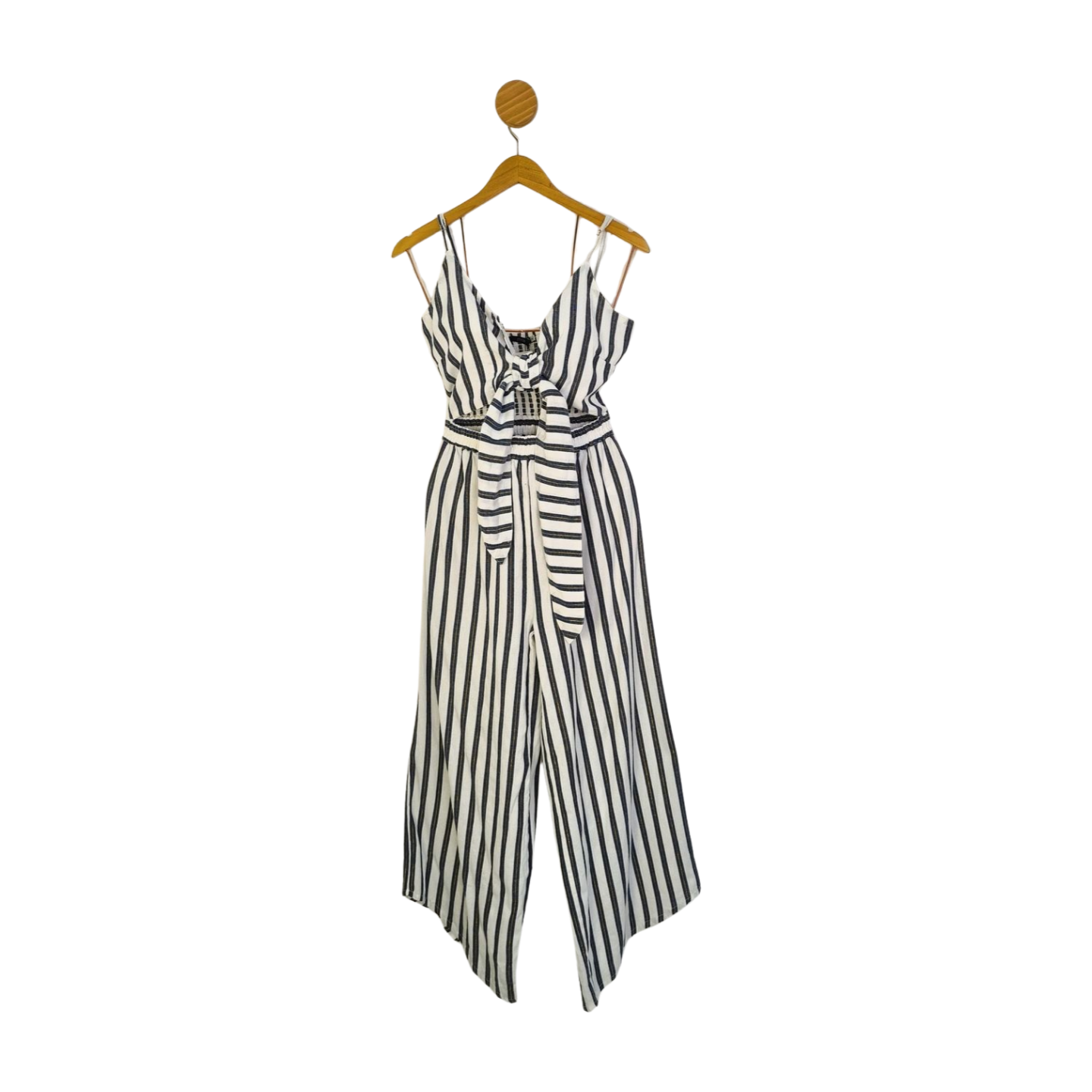 Macacão listrado com fios dourados, lastex nas costas, alças reguláveis e elástico na cintura. 95% Algodão, 5% Poliéster. Medidas: 94 cm busto, 76/86 cm cintura, 112 cm quadril, 130 cm comprimento.