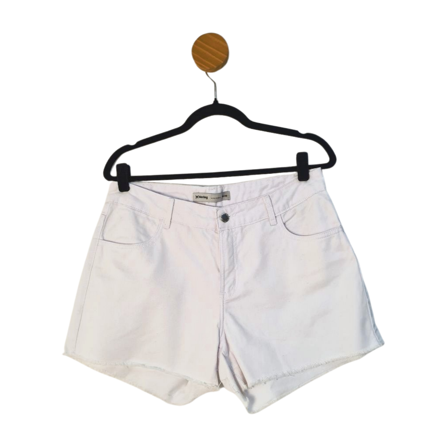 Short jeans com barra desfiada. 100% Algodão. Medidas: 84 cm cintura, 110 cm quadril, 32 cm comprimento, 25 cm gancho.