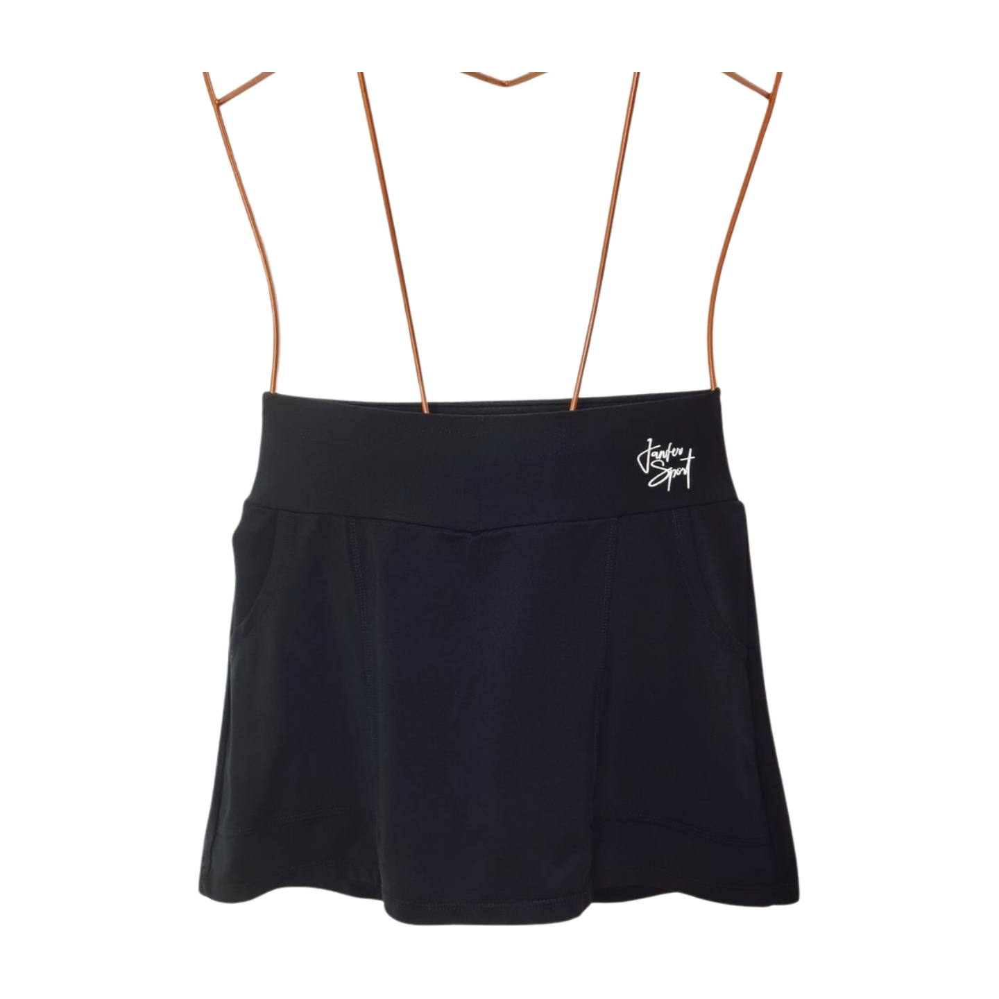 Short saia esportivo, com bolsos, elástico no cós. 90% Poliéster, 10% Elastano. Medidas: 70 cm cintura, 96 cm quadril, 34 cm comprimento, 34 cm gancho.