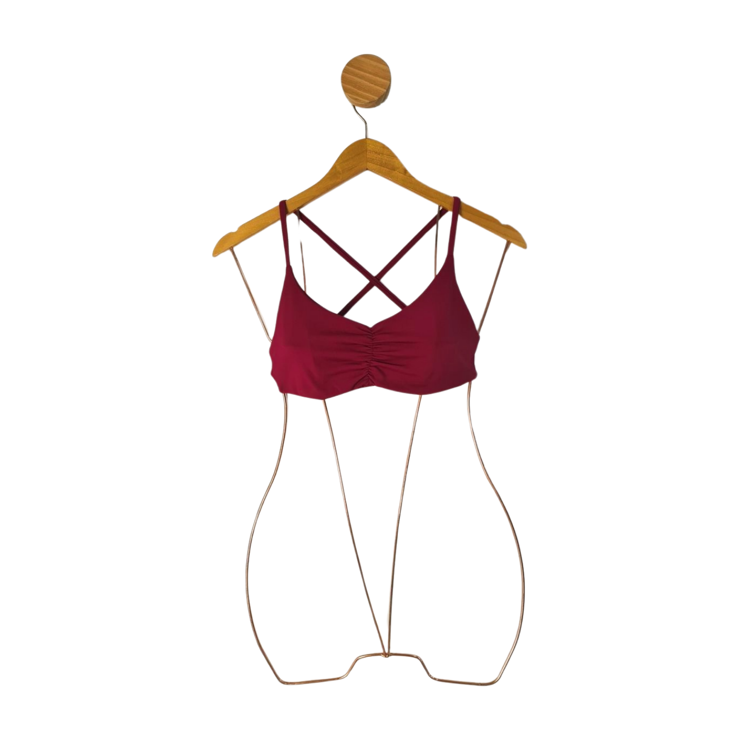 Top franzido no busto, cruzado nas costas, dupla camada em poliamida. Medidas: 70/80 cm busto, 74 cm cintura, 28 cm comprimento.