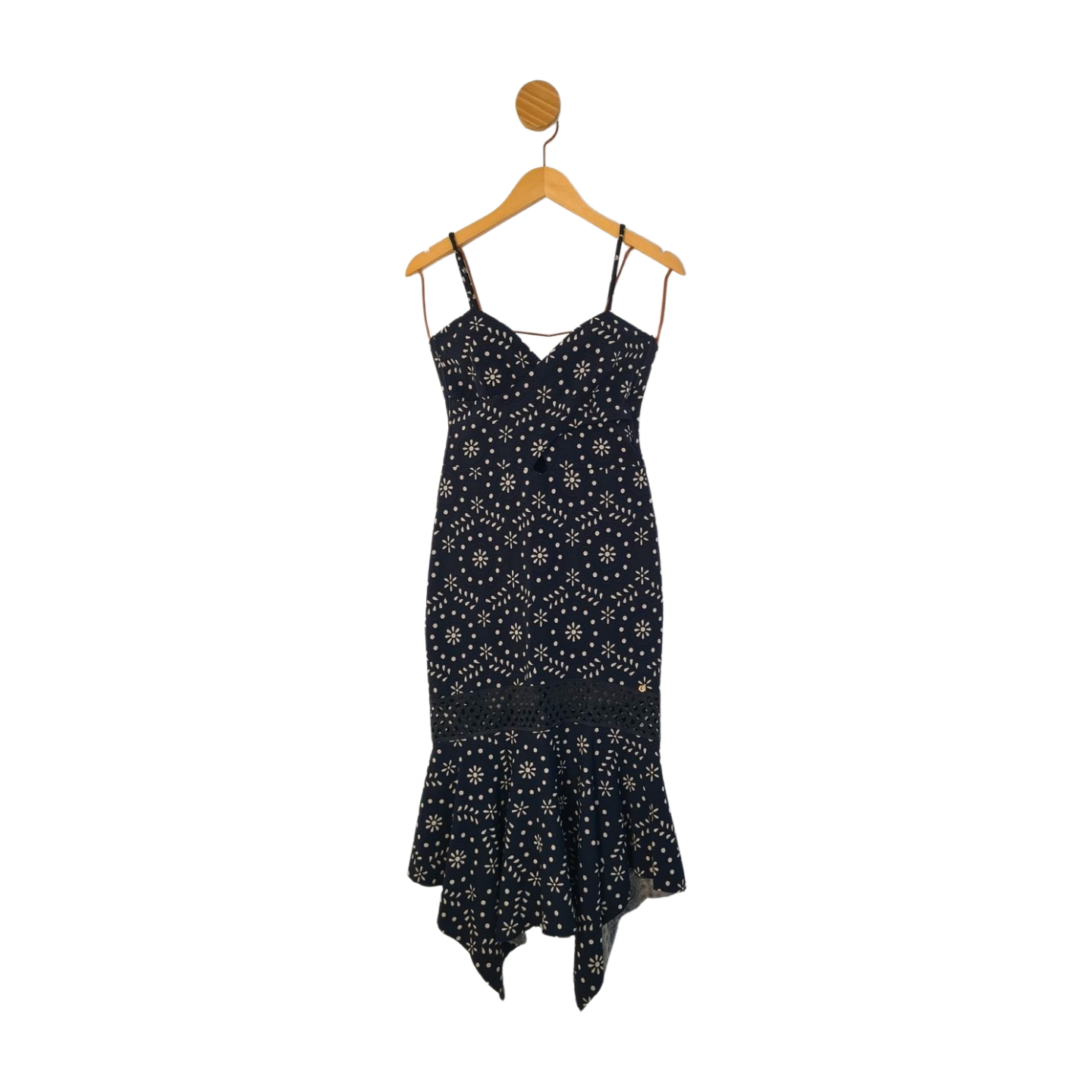 Vestido em malha ajustado ao corpo, tecido texturizado de folhagens, busto forrado e estruturado com barbatana e fechamento em zíper invisível, 67% Poliamida, 24% Poliéster e 9% Elastano. Medidas: 90 cm busto, 80 cm cintura, 112 cm quadril, 126 cm comprimento.
